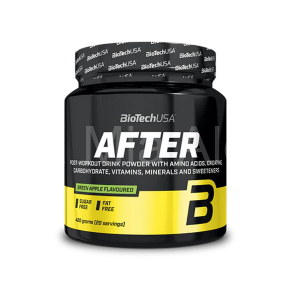 BioTechUSA After je komplexný, ochutený nápoj po tréningu, ktorého účinné látky budú užitočné po tréningu. Produkt obsahuje esenciálne aminokyseliny, komplexné sacharidy, ako aj mikronizovaný kreatín monohydrát. Kreatín zvyšuje fyzickú výkonnosť v prípade opakujúcich sa, vysoko intenzívnych a krátkodobých aktivít. Priaznivý účinok sa dosiahne denným príjmom 3 g kreatínu.